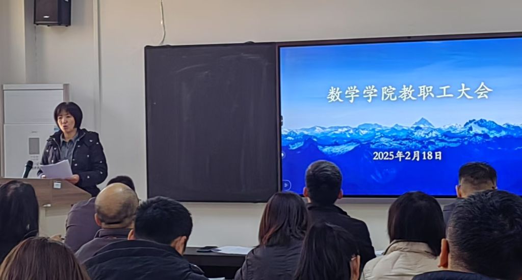为进一步统一思想,理清思路,确保新学期各项工作有序进行,2月18日下午,学院在数学楼504会议室召开2025年春季学期全体教职工大会,学院领导班子成员及全体教职工参加会议。会议由党委副书记李楠楠主持。